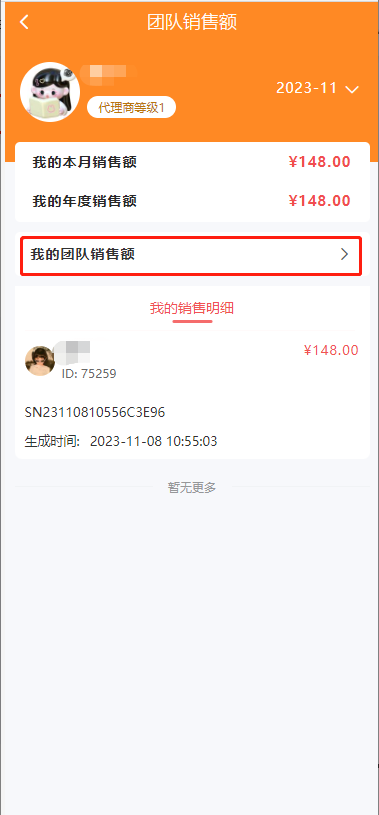 4、点击我的团队销售额查看团队下级中,我有获得销售额的订单总额
